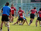 鈴鹿強化合宿3日目。3日連続の晴天となり、今日も強い日差しの中での練習となりました。午前練習はタックルテクニック等の基本練習を中心に行い、午後はチームディフェンス中心の練習を行いました。少々疲れが見え始める頃ですが、そんな中で元気一杯の新人BK選手3名のコメントをご紹介します。