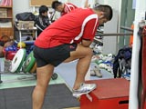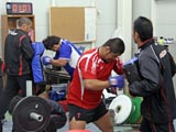 11月15日(月)本日の早朝トレーニングは、元・小田・田中・天野・伊藤・鎌田祐・中田・向久保・河出・前田・鎌田哲・谷口選手の計12名の選手がサーキットトレーニングを実施。週の初め、月曜日の朝ということもあって、選手達もどことなく少し明るい表情でウエイト場入り。しかし、トレーニング内容はとてもハード。高重量でのメニューも増え、週末でリフレッシュされたであろう選手達の表情も、終わる頃にはさすがに疲れた表情。ですが、今週はまだまだ始まったばかり、今週末の三洋電機戦に向けて更に厳しく質の高いトレーニングに励みます。