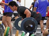 ・ウエイトに励む伊藤選手と サポートに入る濱田Cリーダー