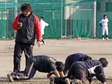 今回のトピックスでは2月29日(水)津工業高校での指導の模様をお伝えします!今回津工業高校で指導にあたるのは、元・藤田・河出・竹丸選手の4名。元選手は昨年の引き続き、2年連続の津工業高校での指導ということもあり、貫録も十分。また藤田選手は、FW選手を中心にスキルを伝授。河出選手・竹丸選手も生徒たち個人個人に細かなアドバイスを送る姿が見られるなど、気分はすっかりコーチモード。指導を受ける生徒たちだけでなく、指導にあたる選手達にとっても非常に楽しく、良い経験を得ることが出来ています。
