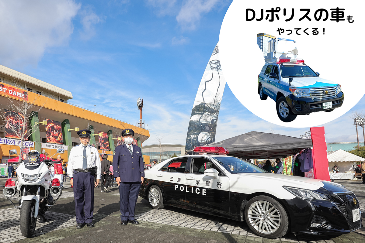 警察官の制服(子供用)を着用し、パトカーや白バイに乗っての記念撮影もできます。