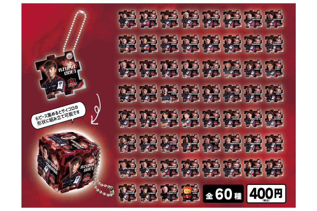 6ピース集めるとサイコロの形状に組み立て可能です。ぜひ推し6選手でオリジナルのキーホルダーを作ってください。