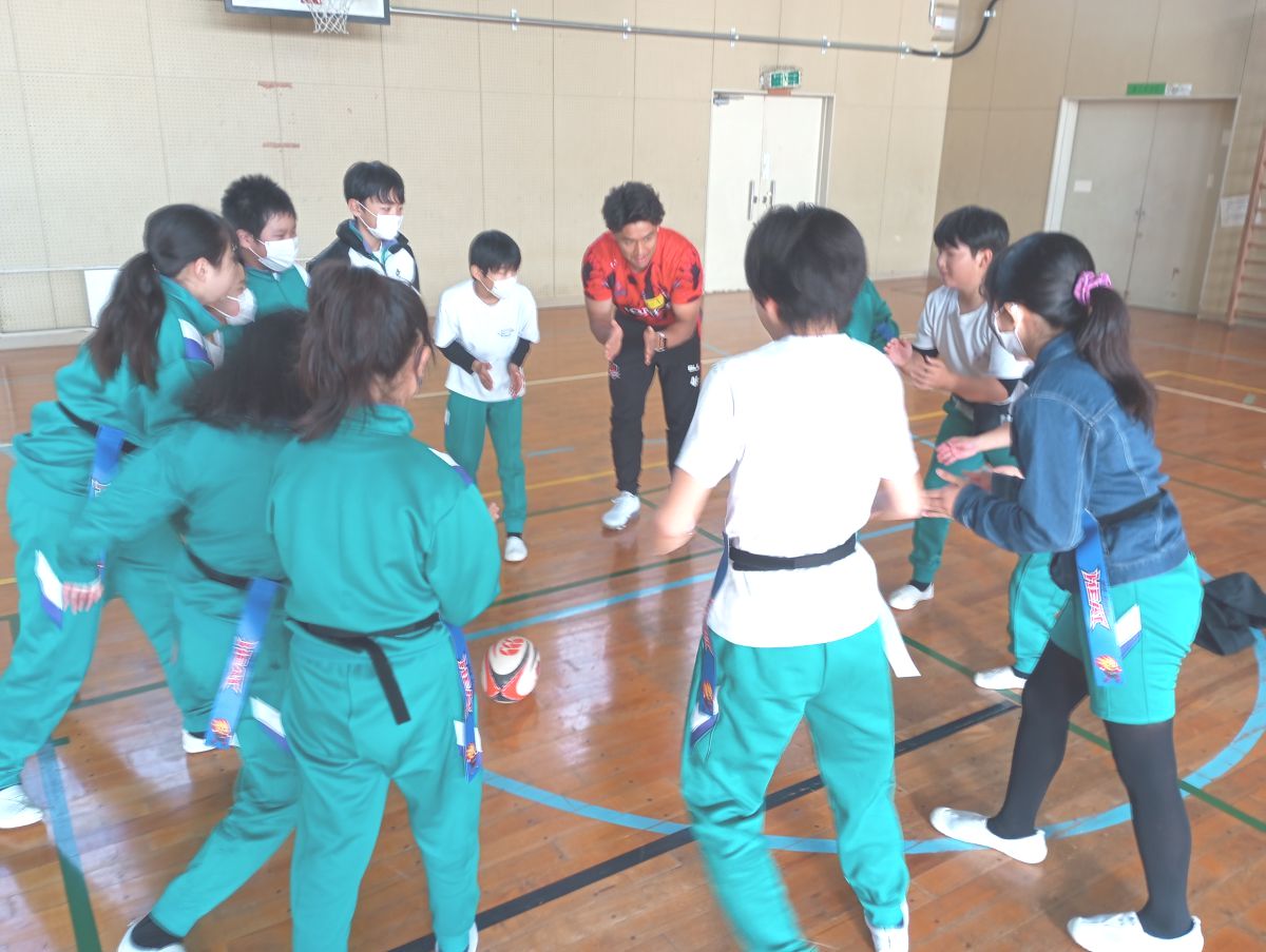 内容:ラグビーを通じたゲームを行い、チームワークの大切さを学び、