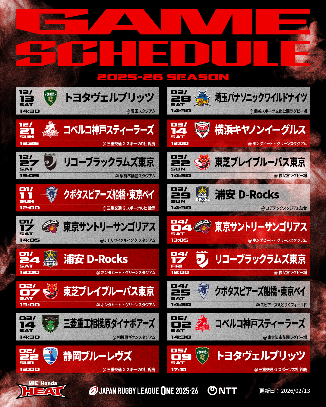 今シーズンの大会フォーマットや他チーム試合情報については、ジャパンラグビーリーグワン公式サイトでご確認ください。