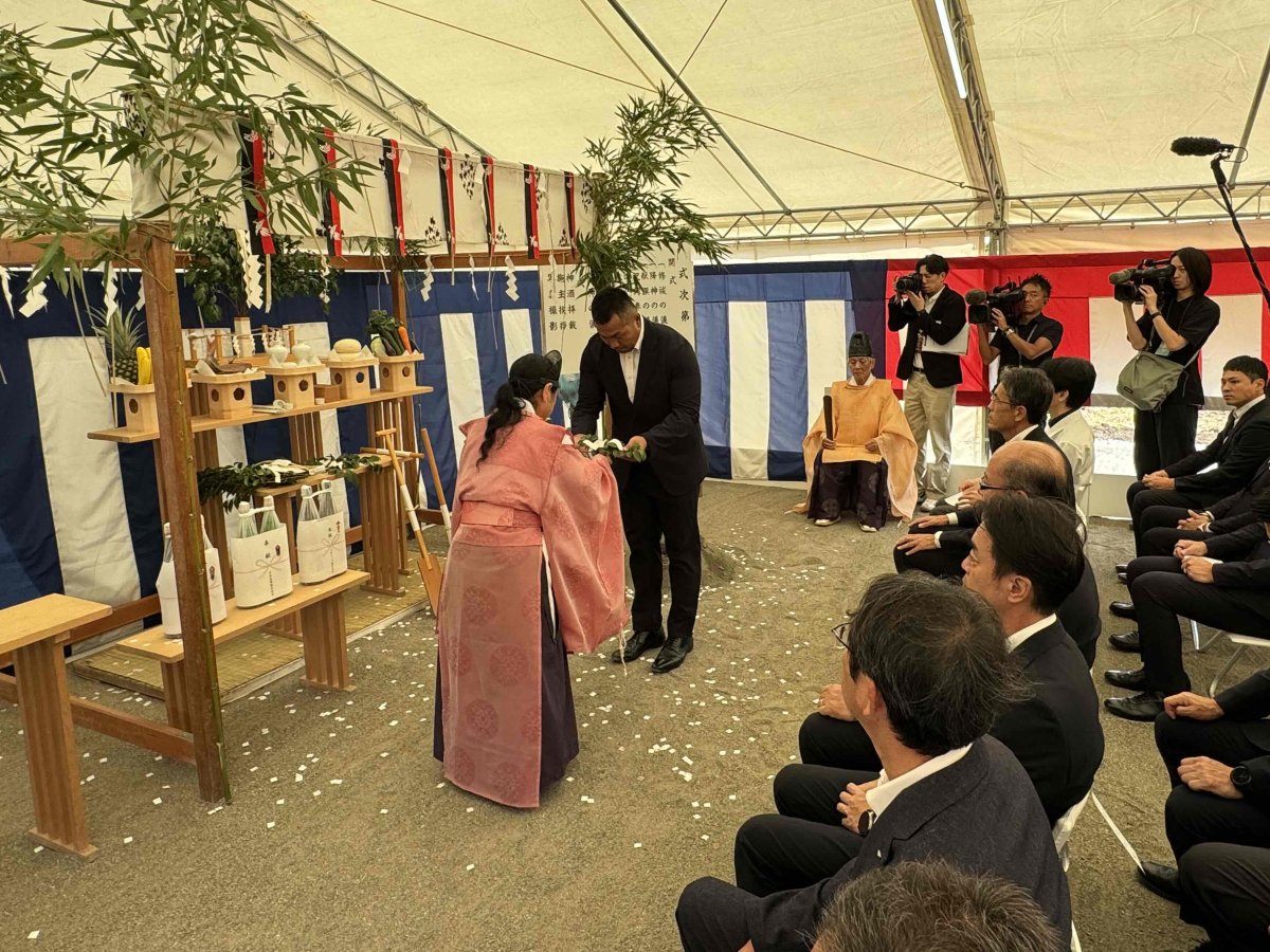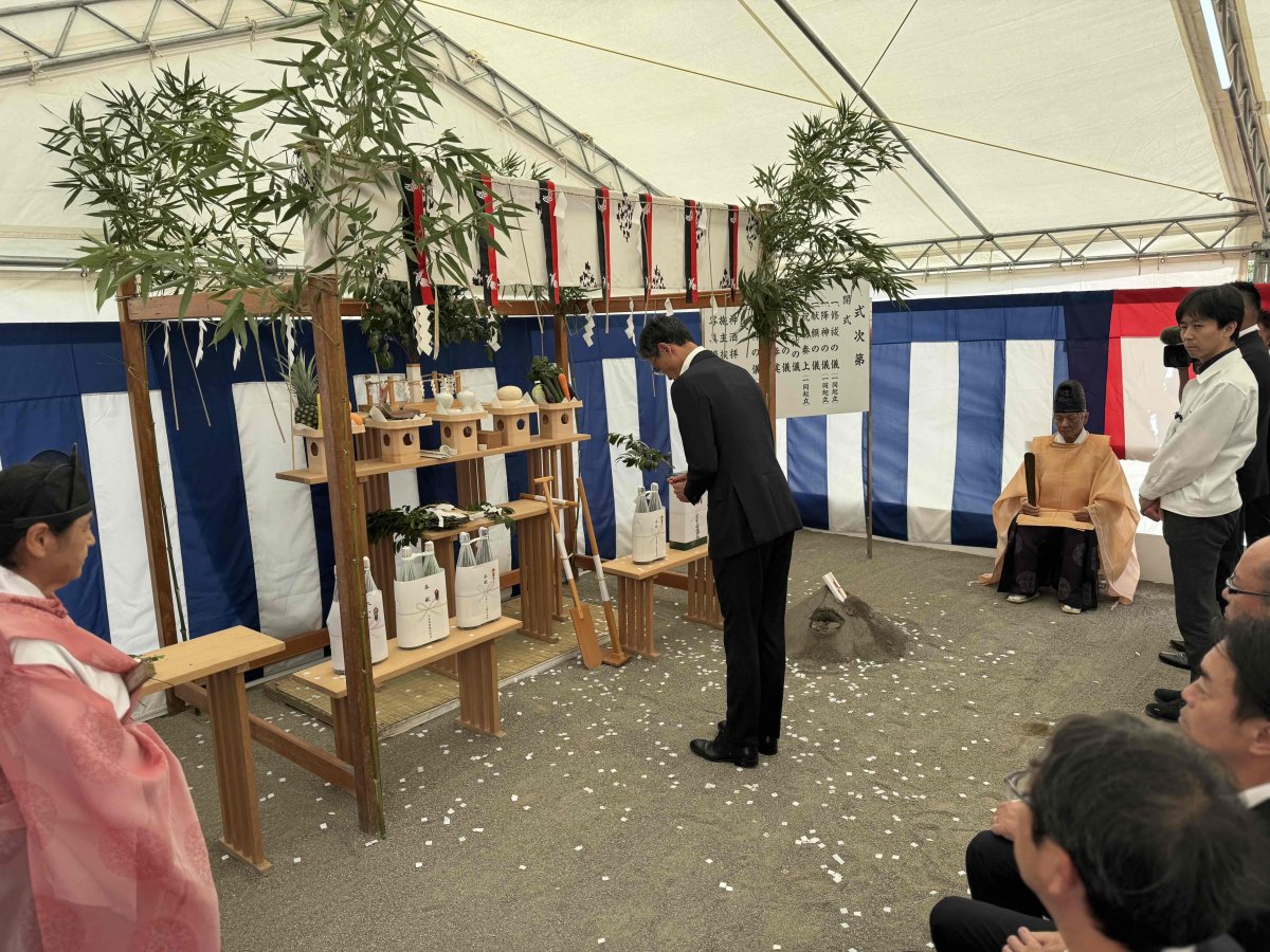 当日は、ホンダヒートから最高顧問の小澤 学とゼネラルマネージャーの大橋 幸平が参列し、鍬入れなどの儀式を通じて、工事の無事を祈願いたしました。