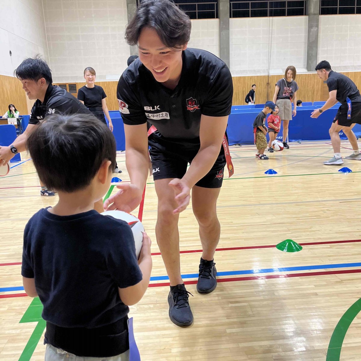 参加者の皆さんとラグビーボールを使ったミニゲームで交流するなど栃木県の皆さんにラグビーの楽しさを届けてくれました。