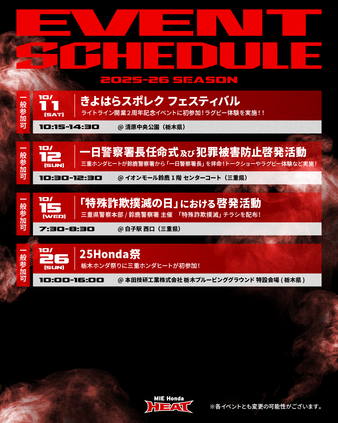 イベント 2025.9.30 10月のイベント参加情報 10月の参加イベントをまとめてご紹介! 各イベントの詳細は、後日改めてご案内させていただきます。※各イベントとも内容等が変更される可能性がございます。