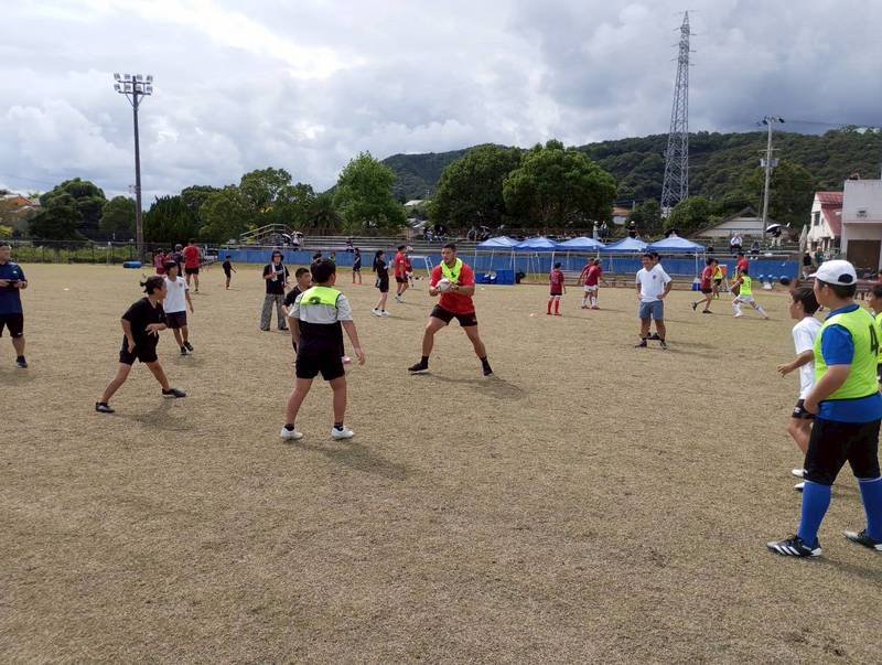 熊野市山崎運動公園多目的グラウンドにてラグビー指導を行いました。
