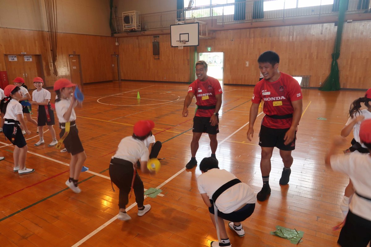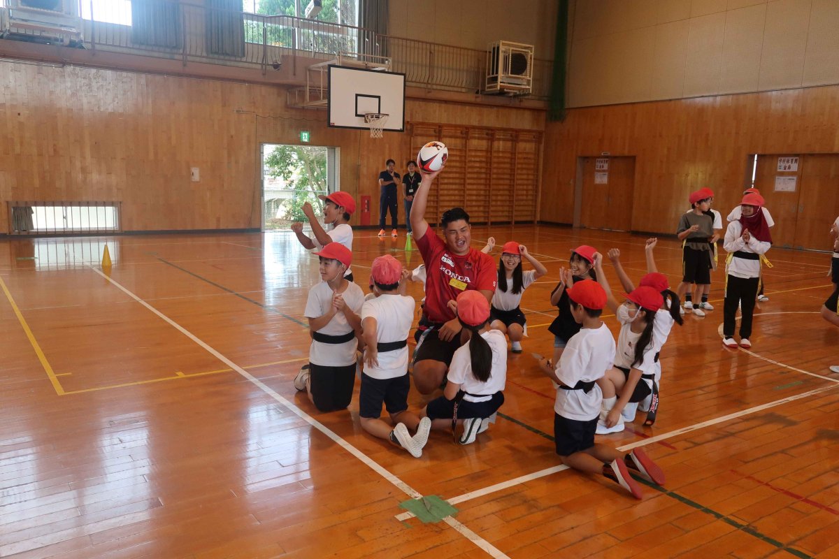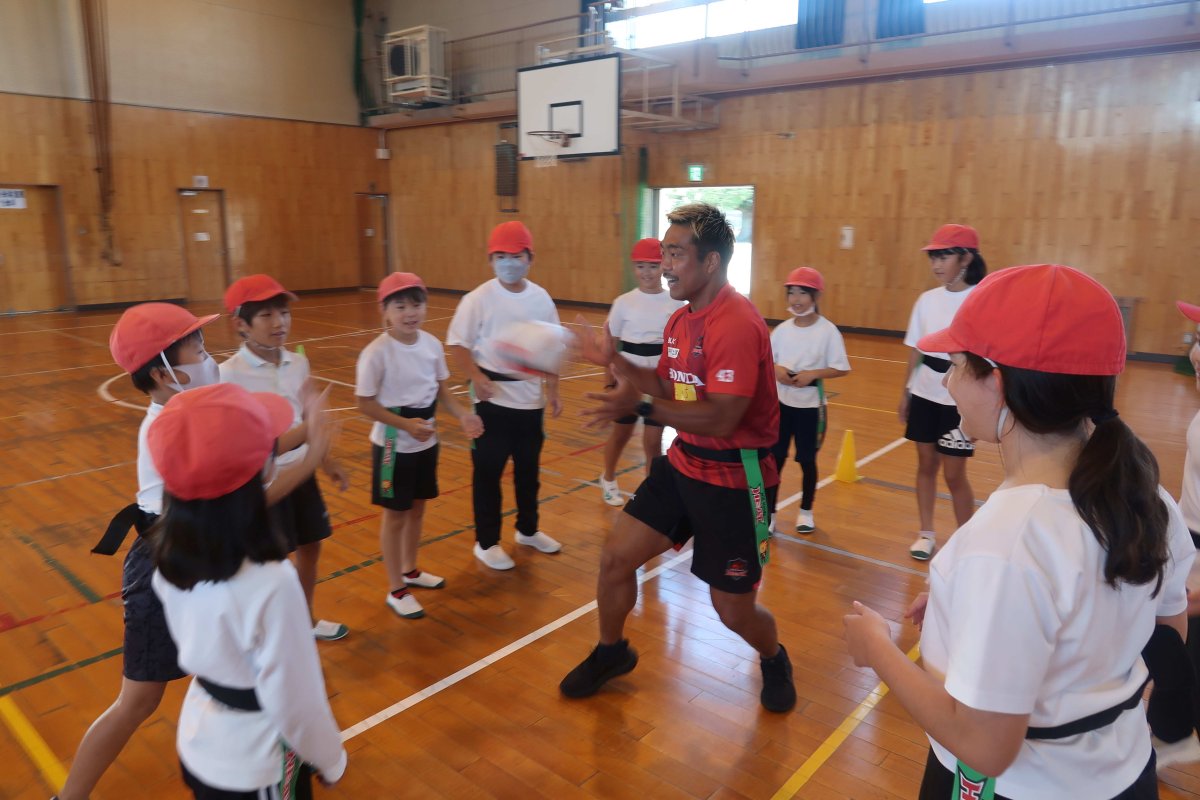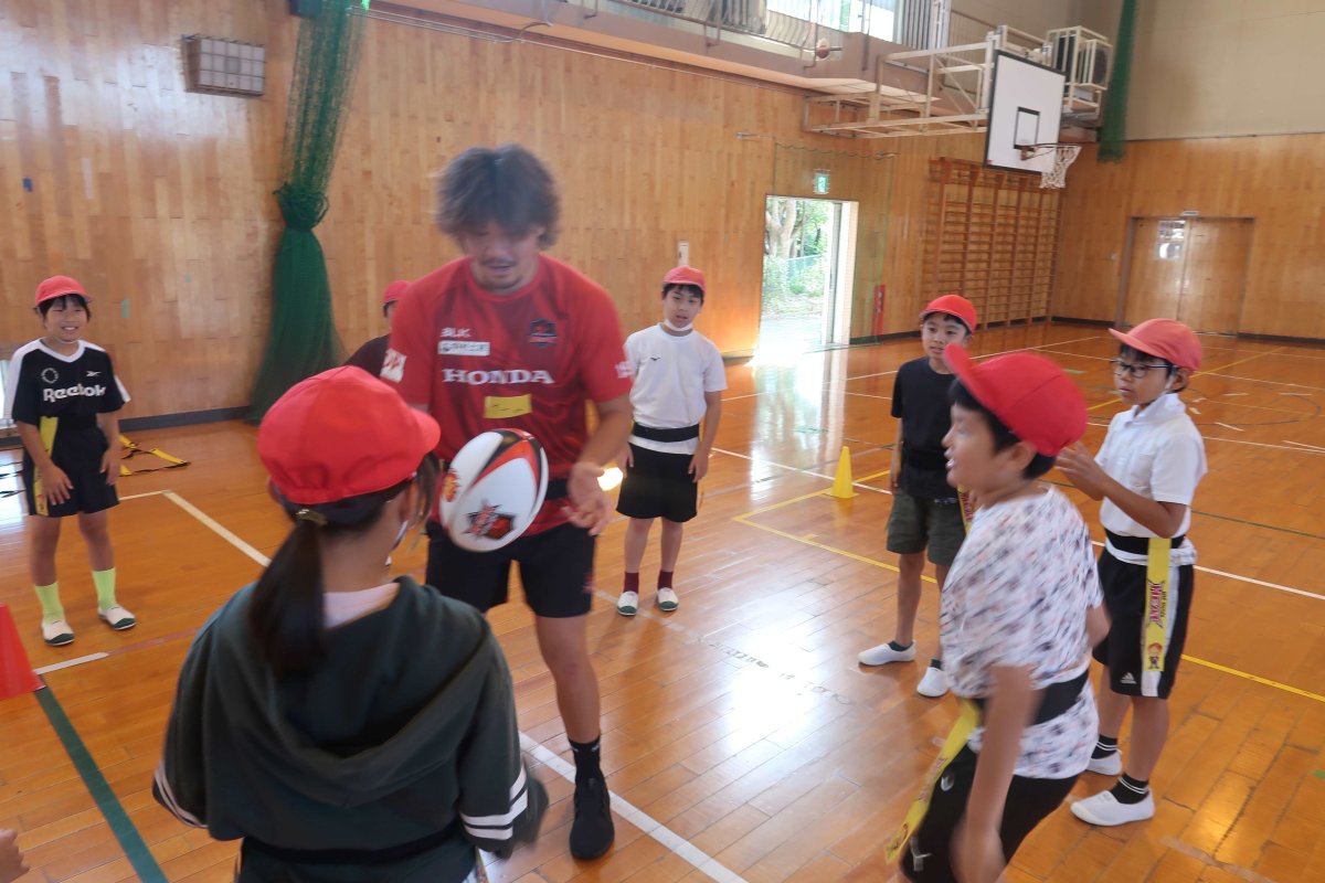 10/8(水) 地域貢献活動の取り組みの一つとして、鈴鹿市立神戸小学校にてヒート授業(ラグビーを通じてチームワークを学ぶ授業)を開催しました。