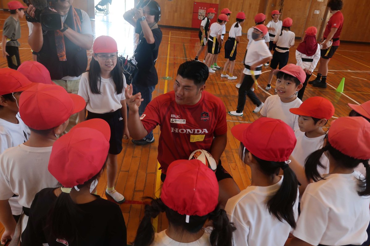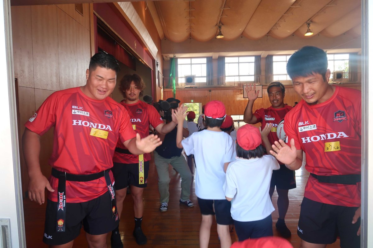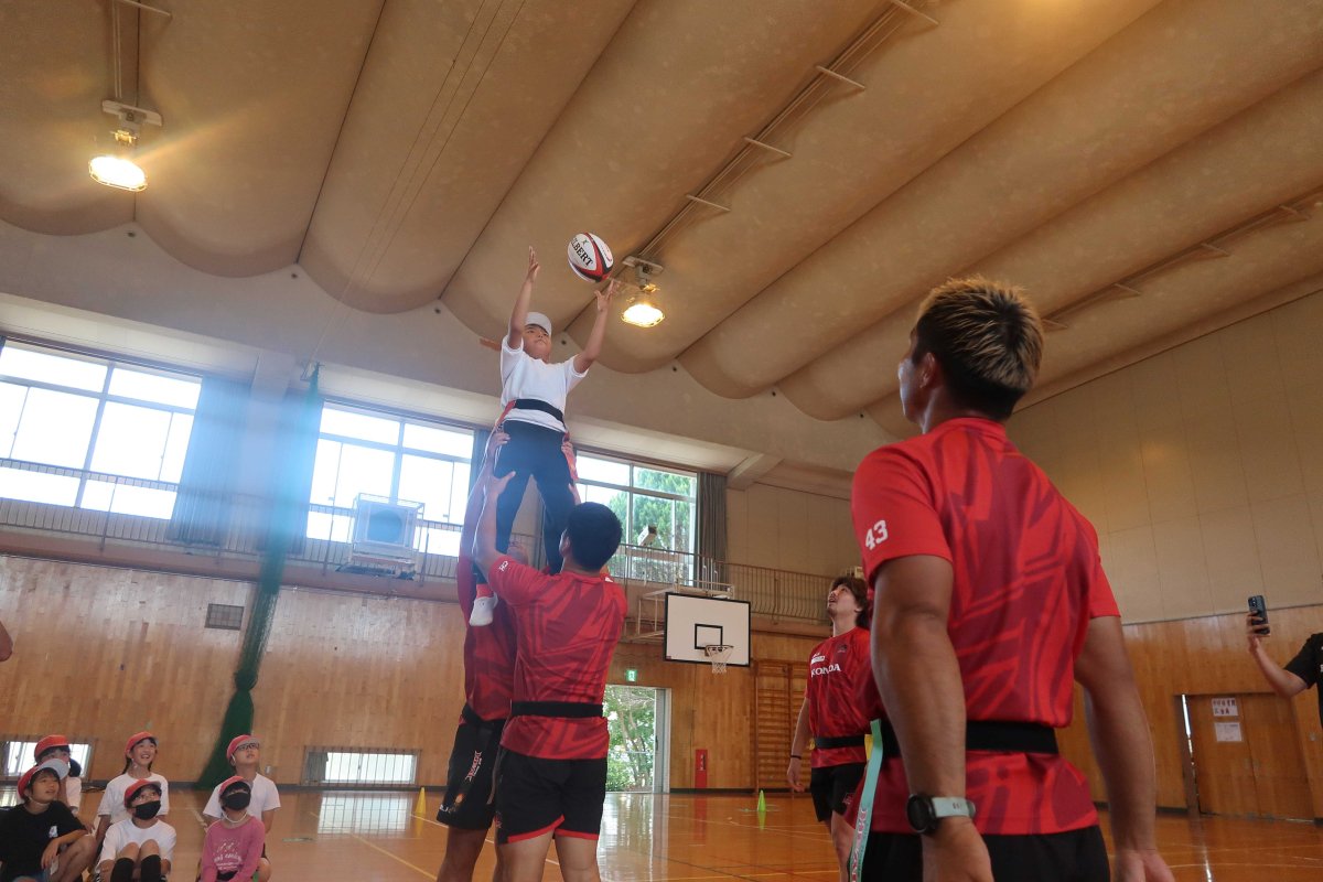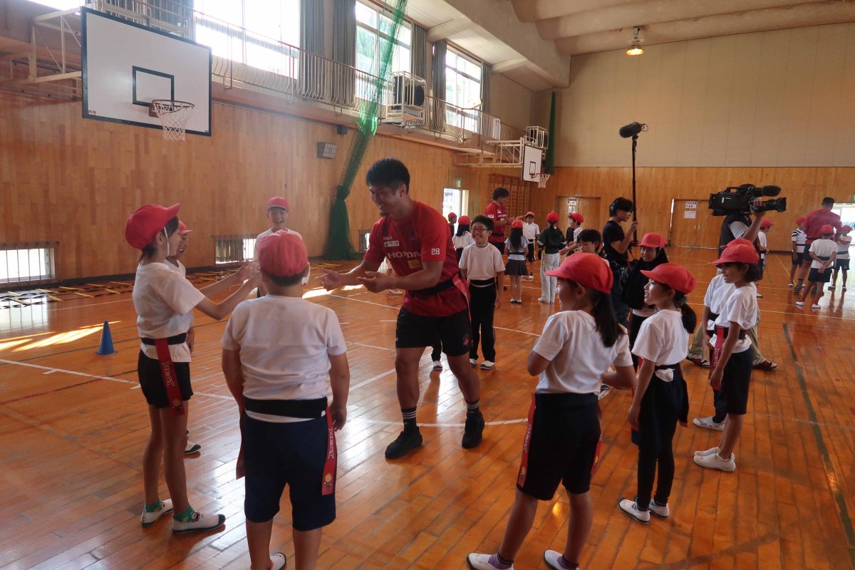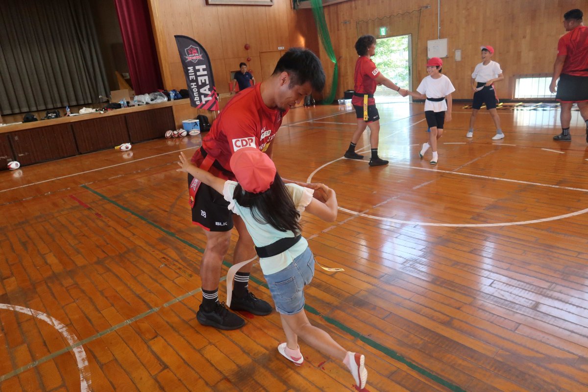 10/8(水) 地域貢献活動の取り組みの一つとして、鈴鹿市立神戸小学校にてヒート授業(ラグビーを通じてチームワークを学ぶ授業)を開催しました。