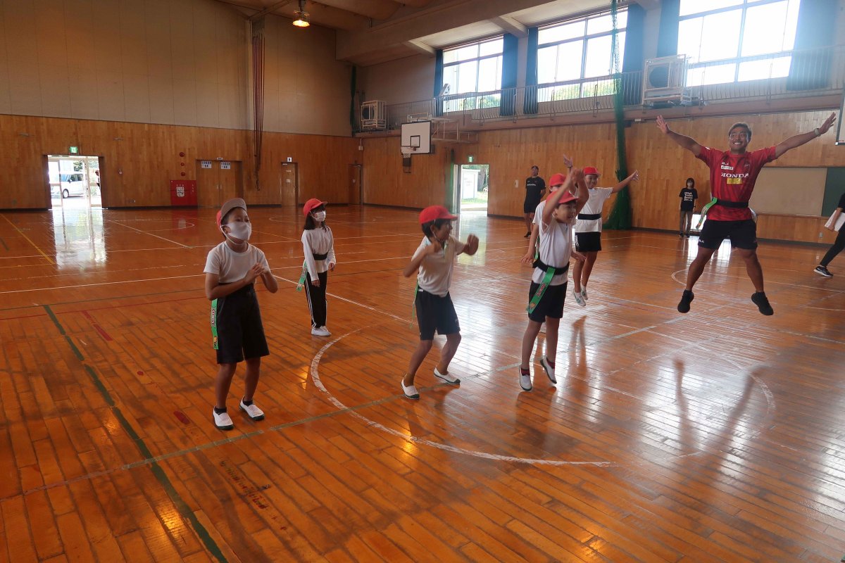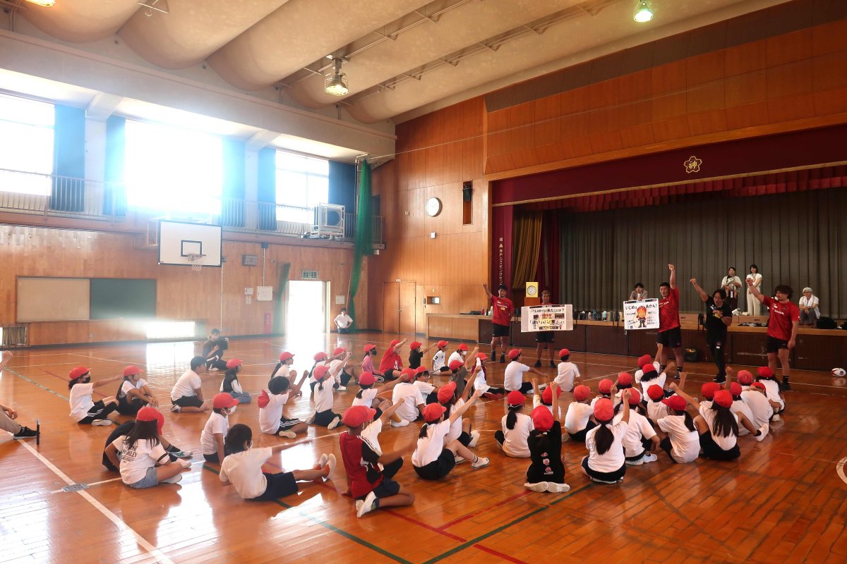 ・昨日は素敵な出前授業ありがとうございました。こんなにも子どもたちが自分から積極的に行動する姿や、どうすればいいのか作戦を練る姿を見たのは初めてで、子どもたちの可能性を感じました。上村さんのひきつける力、選手たちの圧倒的な技術によって子どもがひきつけられているのを感じました。教室に戻ってきてからも試合を見に行きたいという声がたくさん聞こえてきました。本当にありがとうございました。