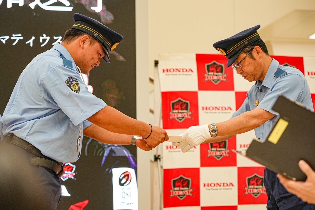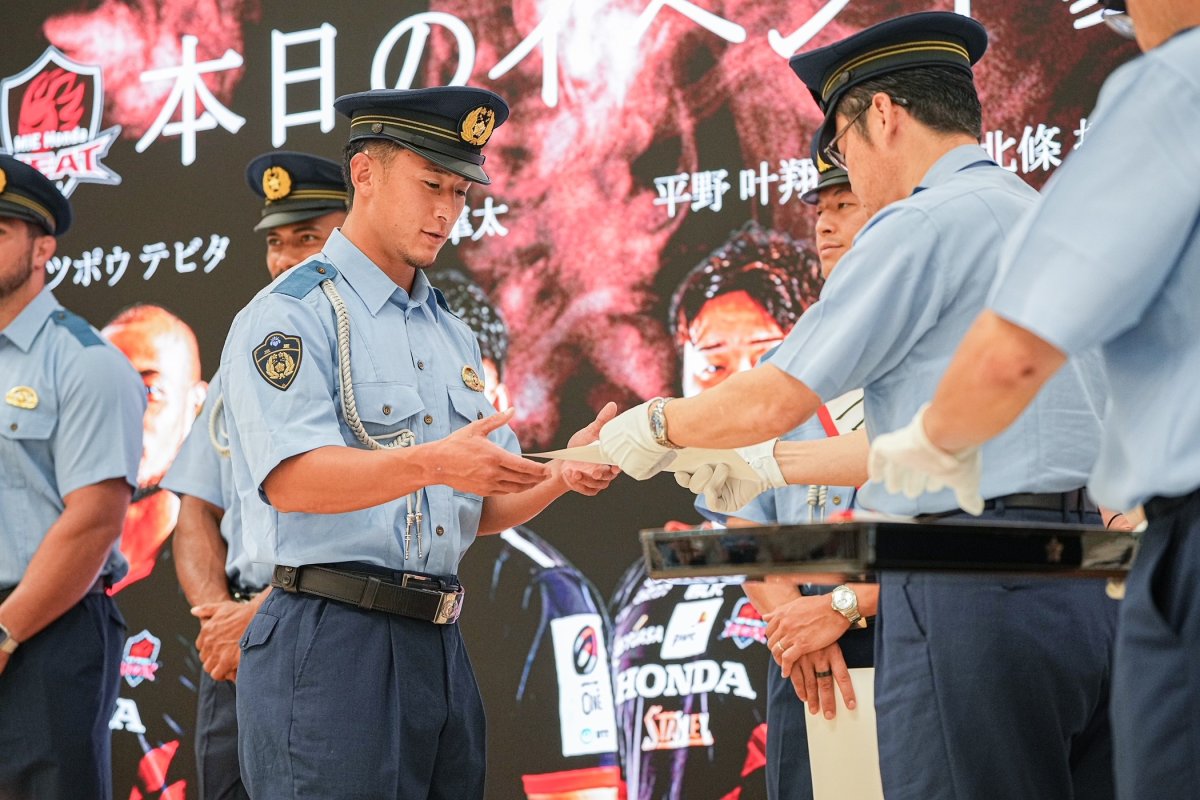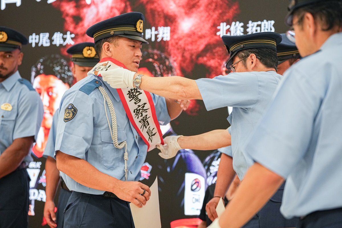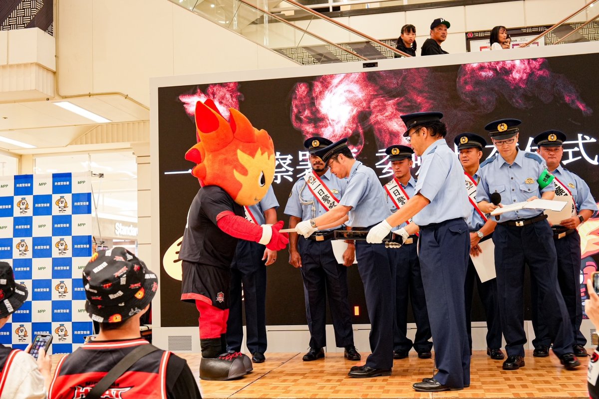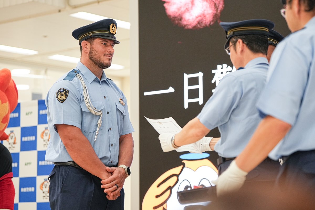 イベント当日は、平野 叶翔、中尾 隼太、北條 拓郎、ツポウ テビタ、マティウス・バッソンが、警察官の制服を着用し、登場しました。