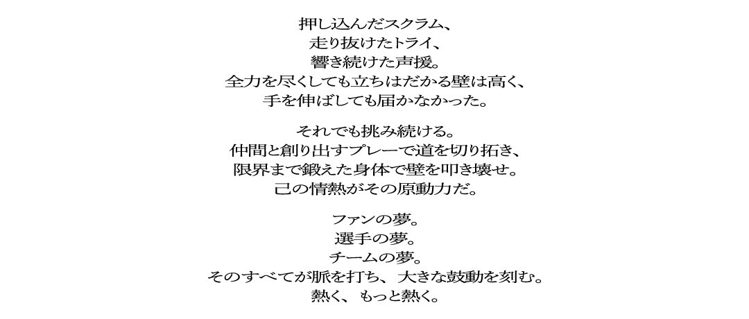 が込められています。昨シーズンに味わった悔しさを振り払い、どんな高い壁も打ち破る強い覚悟を胸に、選手たちは新シーズンを戦います。