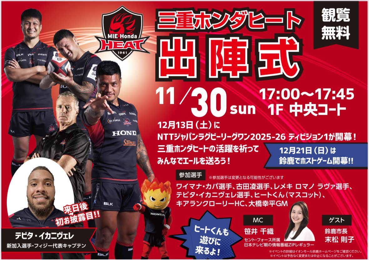 鈴鹿市そして三重ホンダヒートを応援してくださる皆さまと共に戦い抜くために、イオンモール鈴鹿にて、“2025-26 シーズン 三重ホンダヒート出陣式”を開催する事となりましたのでお知らせします。