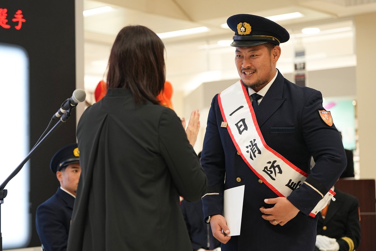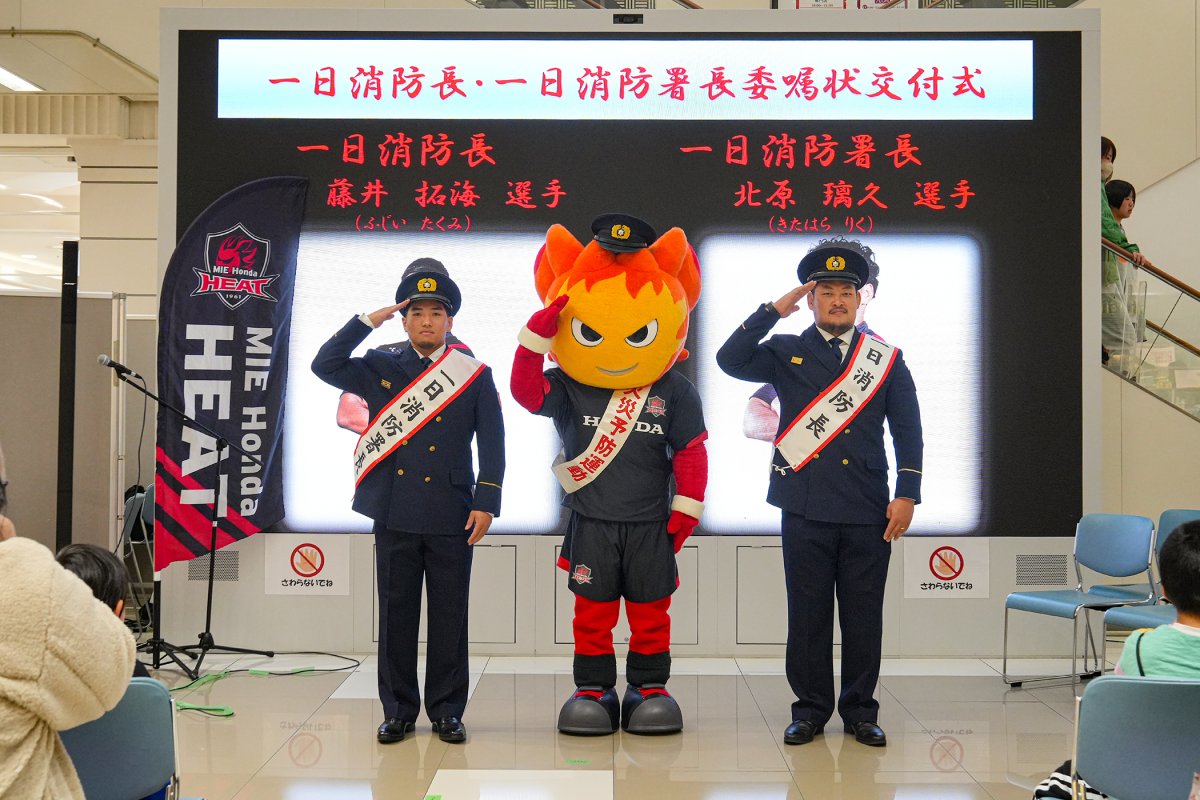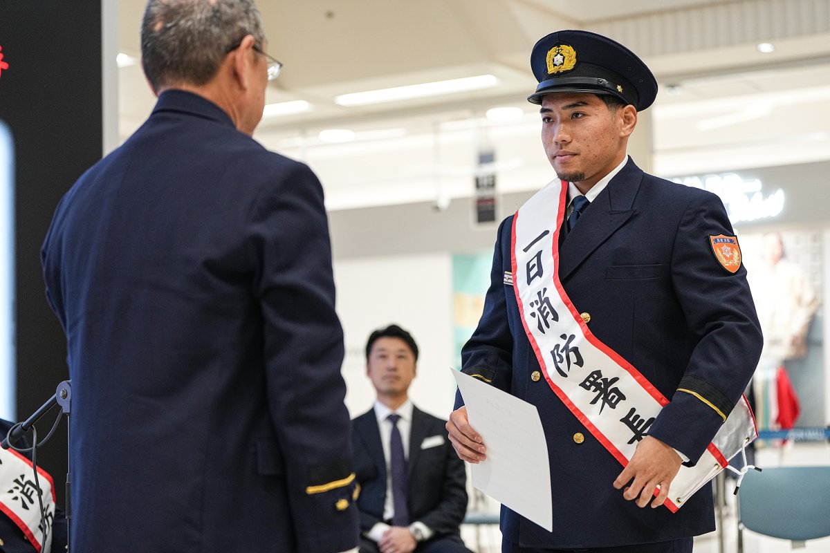 11/3(月)イオンモール鈴鹿にて、鈴鹿市消防本部主催「一日消防長および消防署長委託式」に参加しました。