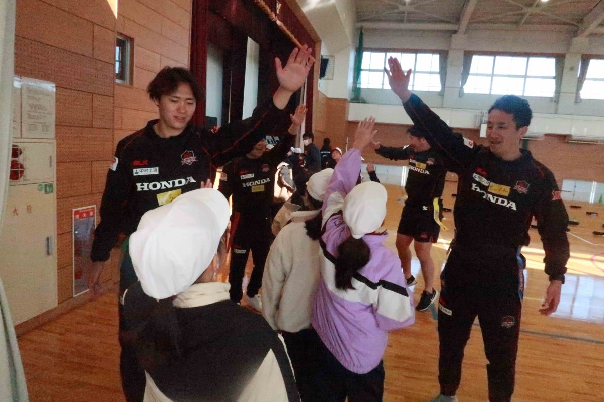 ⑤タグを取りあう鬼ごっこが楽しかったです。他の活動もとても楽しかったです。ラグビーのことを少し知れて良かったです。ぜひ、HONDAヒートの試合を観に行きたいと思いました。