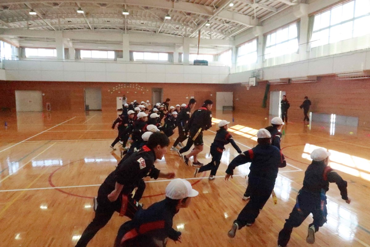 内容:ラグビーを通じたゲームを行い、「本気」で取り組む事の大切さや、仲間と協力することの楽しさ、みんなの意見を尊重する事の大切さを実感。