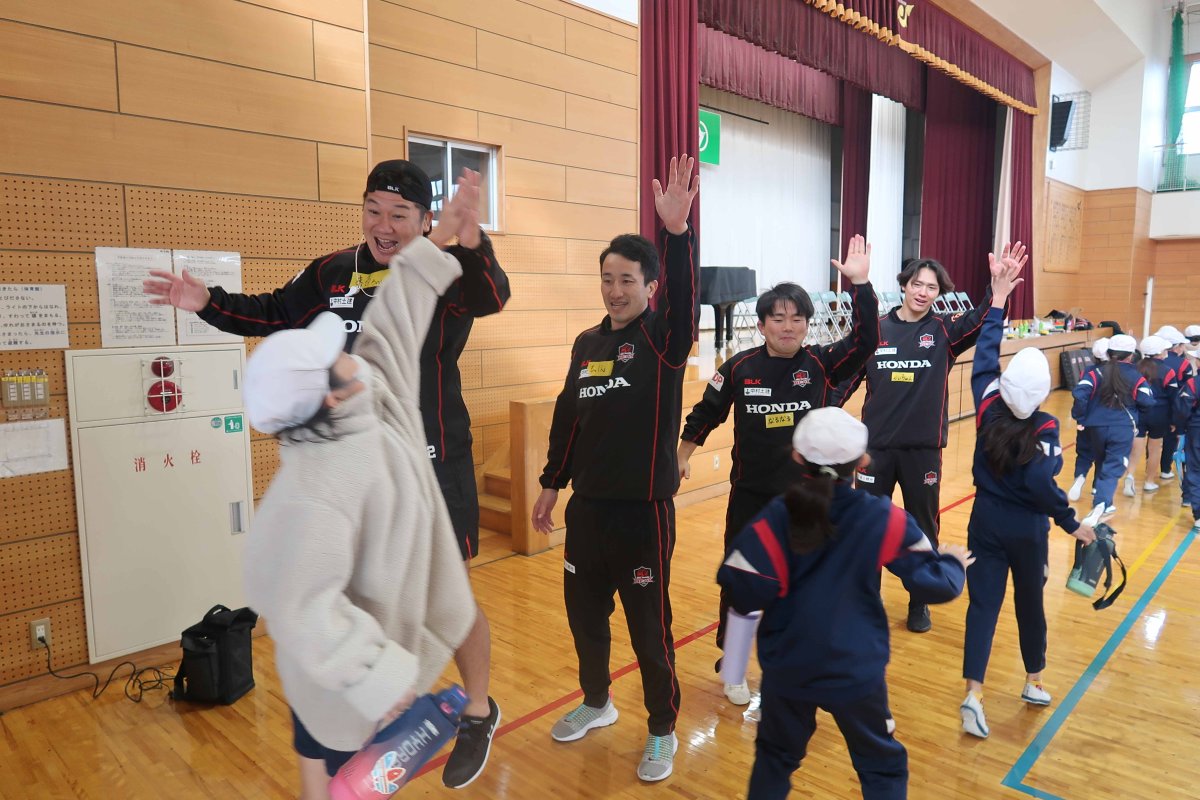 ・大変お世話になりました。スタッフの皆さんは最初からハイテンションで盛り上げてくださり、いつもは運動が苦手でおとなしい児童も、笑顔を見せながら活動に臨むことができていました。運動が得意な児童も、思いっきり自分の力を発揮することができ、すがすがしい表情をしていました、。皆さんの明るくまっすぐな姿勢からも、一流とは何か、本気とはどういうことかを学ぶことができたように思います。最後はサイン会までしていただき、本当にありがとうございました。