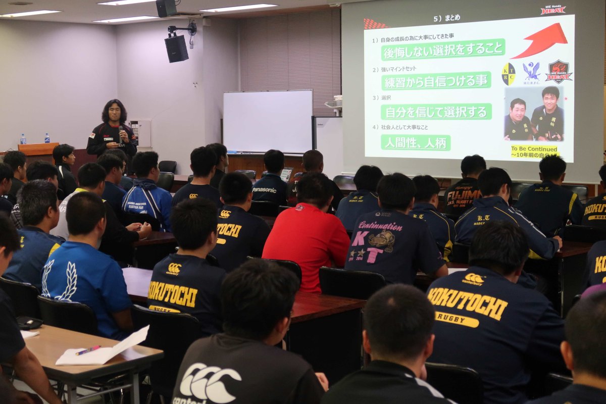 ・渡邉選手のお話を聞き自分が思ったことは、自分にあったルーティンの重要性を知りました。自分はあまりルーティンのことなどはあまり考えたことはなかったのですが、渡邉選手の話を聞き、自分にあったルーティンをすることで試合に対してのパフォーマンスが上がっることを知り自分も今後自分に合うルーティンを見つけて、取り組むようにしようと思いました。
