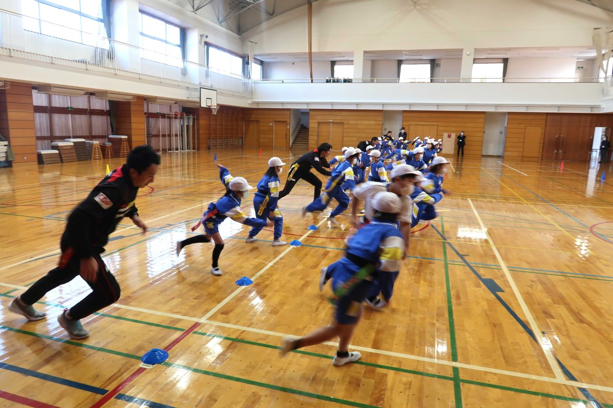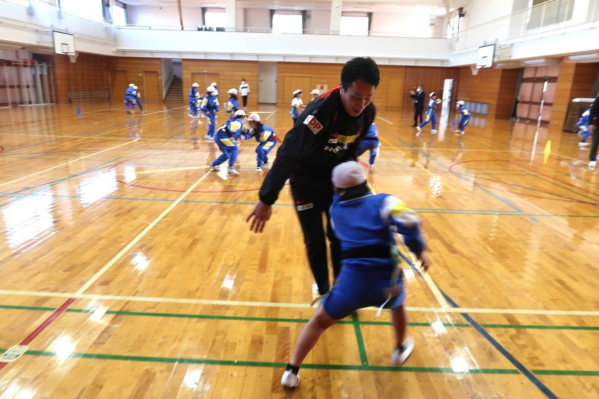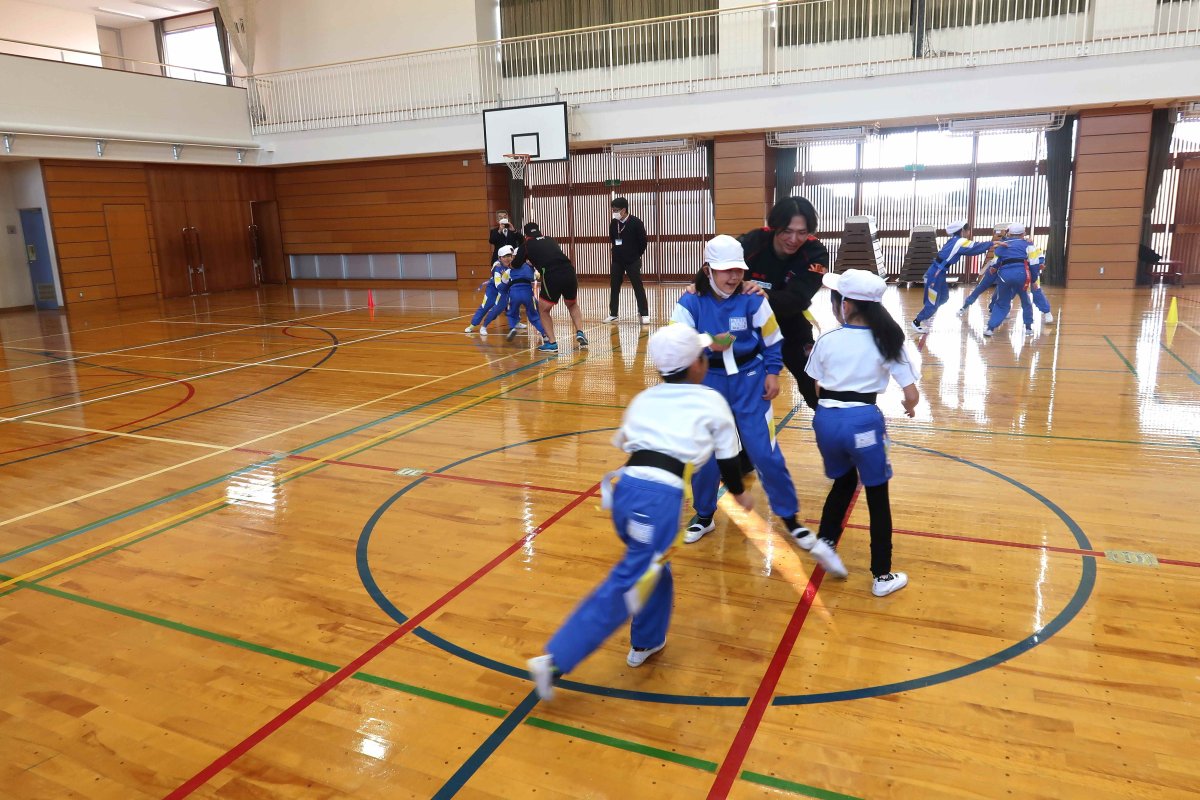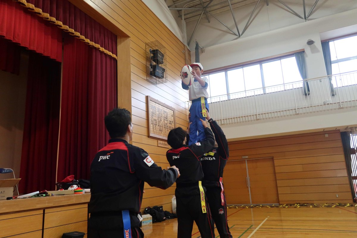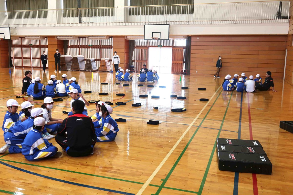 ・先日は、とても楽しい授業をありがとうございました。児童の発達段階に応じた指示の出し方やルールの説明、体作りの運動、教師として勉強になるところがたくさんありました。また、実践で見せてくださったラグビーの魅力にもたくさん触れ,子どもたちは興味をもち、試合を見に行きたいと話をしていました。今後も授業で教えていただいたことを生かしていきたいと思います。