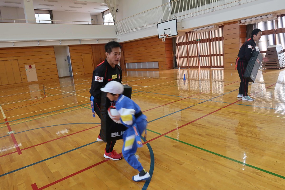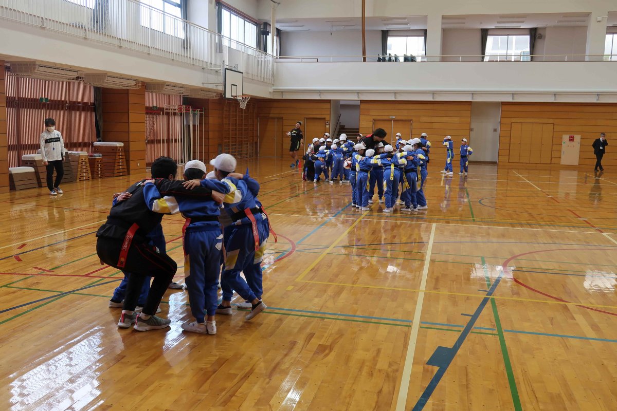ラグビーを通じたゲームをたくさん行い、チームワークの大切さを学んで頂きました。