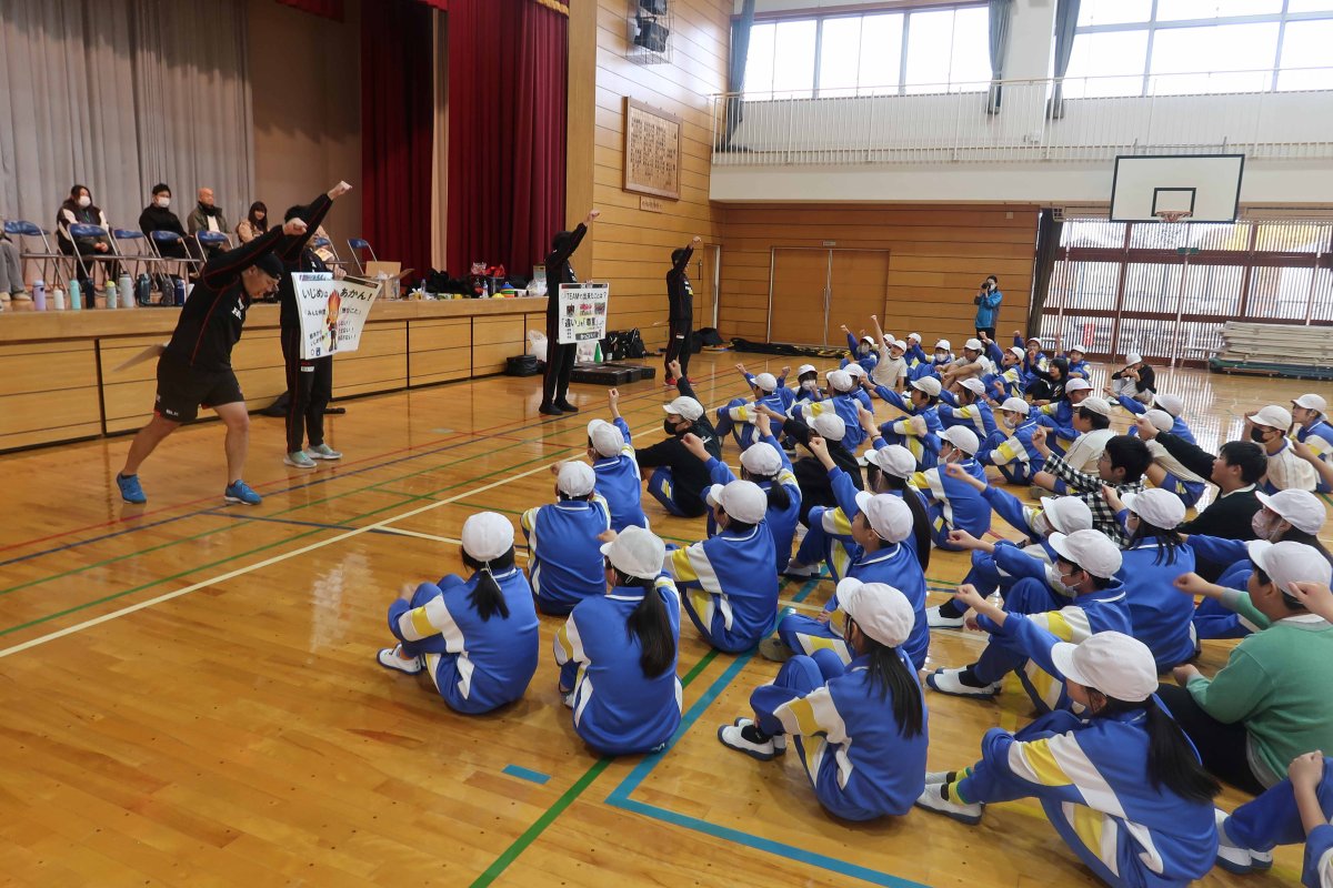 ②鬼ごっこや綱引き等全ての活動が、楽しかったです。「いじめは絶対にダメ!」ということを改めて学ぶことができました。最後に、バックをいただきサインをもらえたことがとても嬉しかったです。