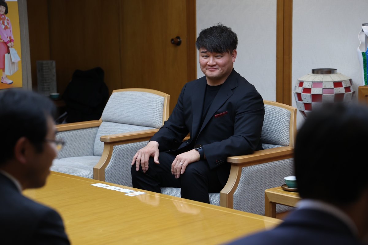 1月24日(土)に栃木県でホストゲームを初開催するにあたり、大橋GM、星野 克之選手、平野 叶翔選手が宇都宮市役所を表敬訪問し、佐藤 栄一 宇都宮市長へご挨拶しました。